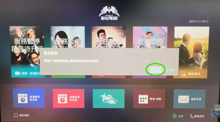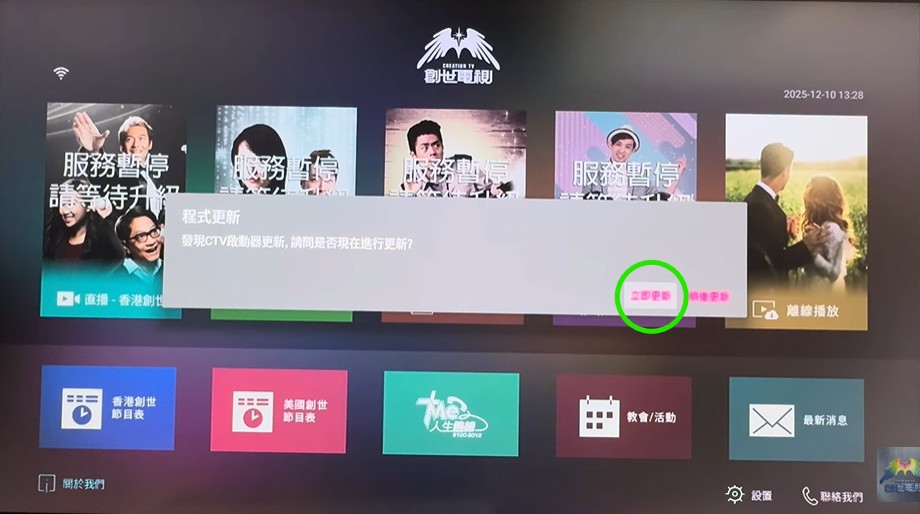 創世電視正全面進行系統優化與改版。雖然系統仍在更新中,但在創世影盒上, 您現已可以更新下載最新版本(Version 3.3.1),繼續收看節目。
