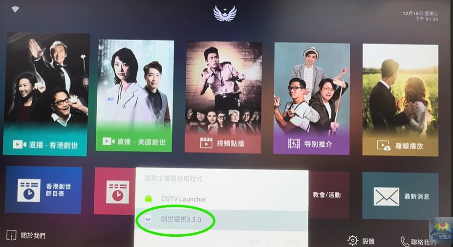 畫面會出現選取主螢幕應用程式、請選擇「創世電視3.3.1」。
