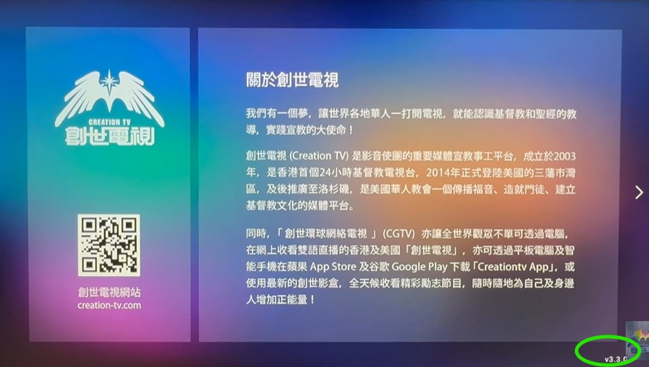 下載最新版本繼續收看節目:1. 第一代創世影盒 (白色包裝盒) CTV Box v3.3.1 升級步驟 (按此收看升級步驟影片)